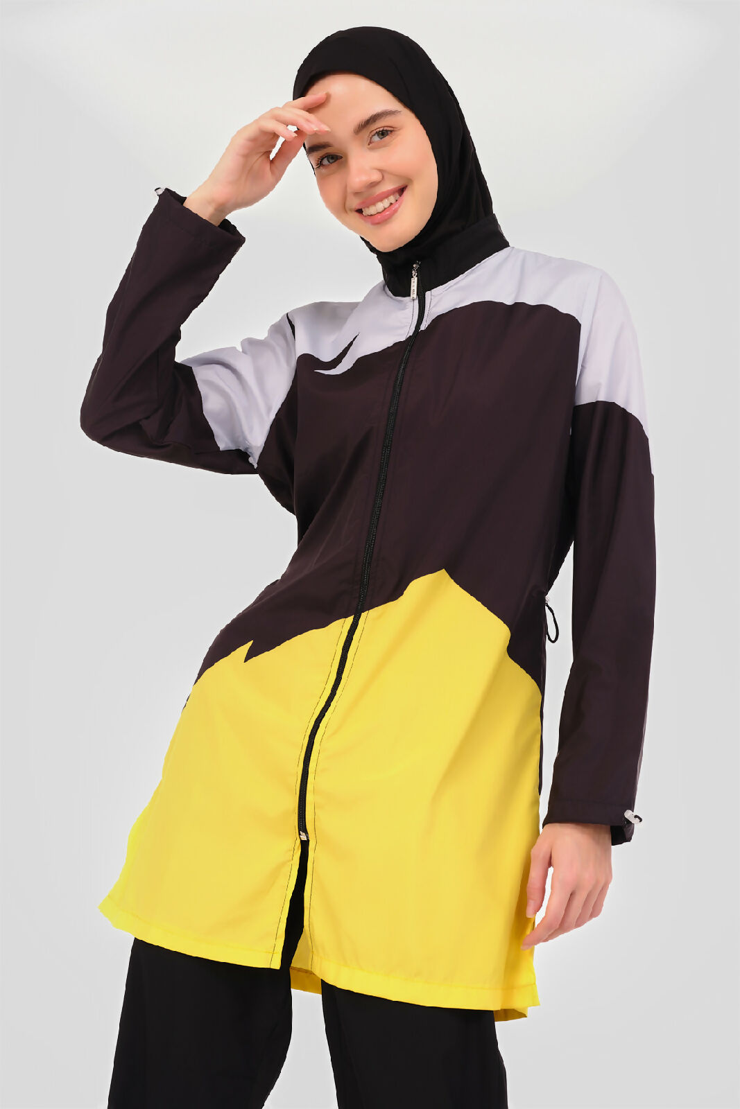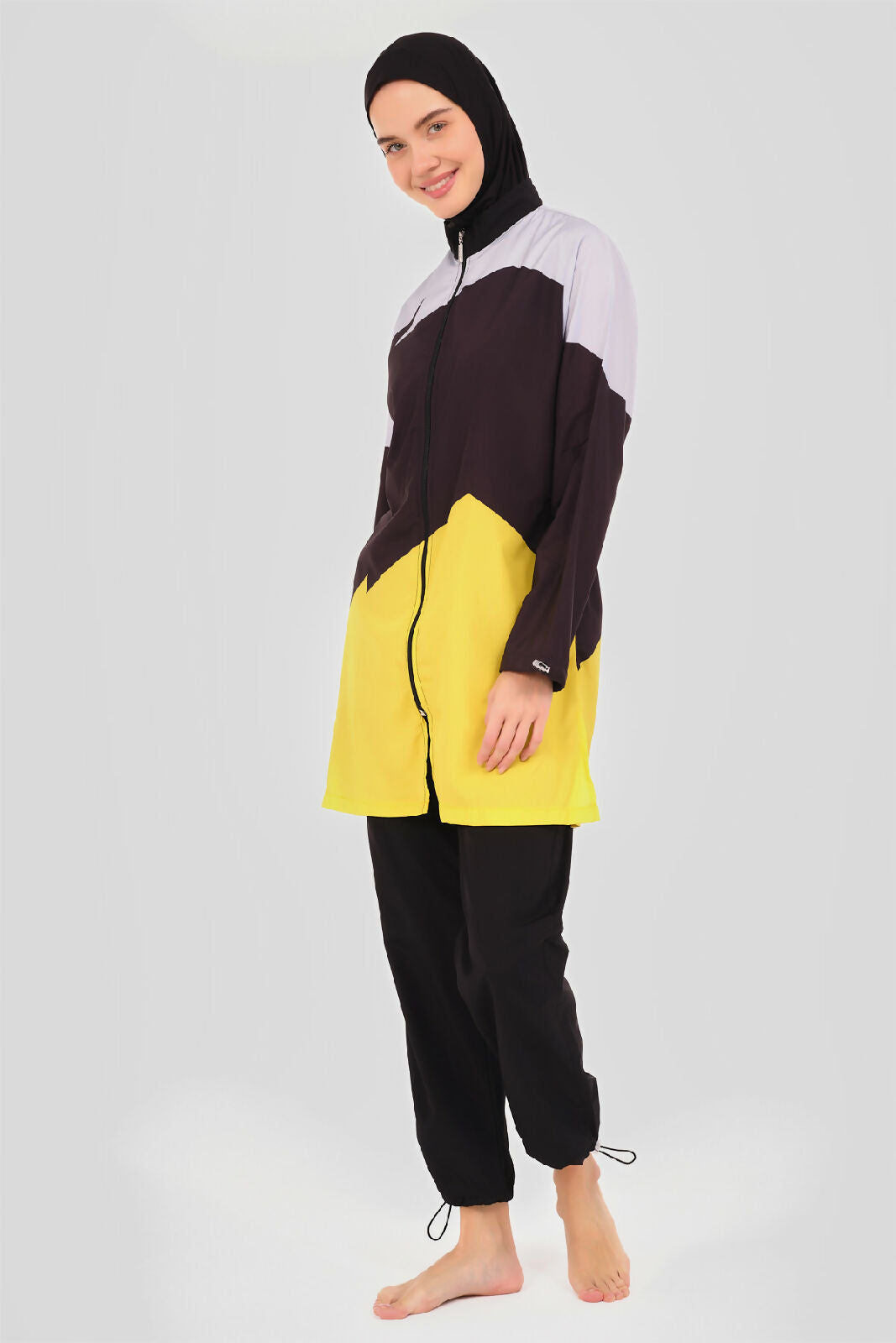 🖤💛 بوركيني تركي 5 قطع – أسود مع أصفر ستايل سبور