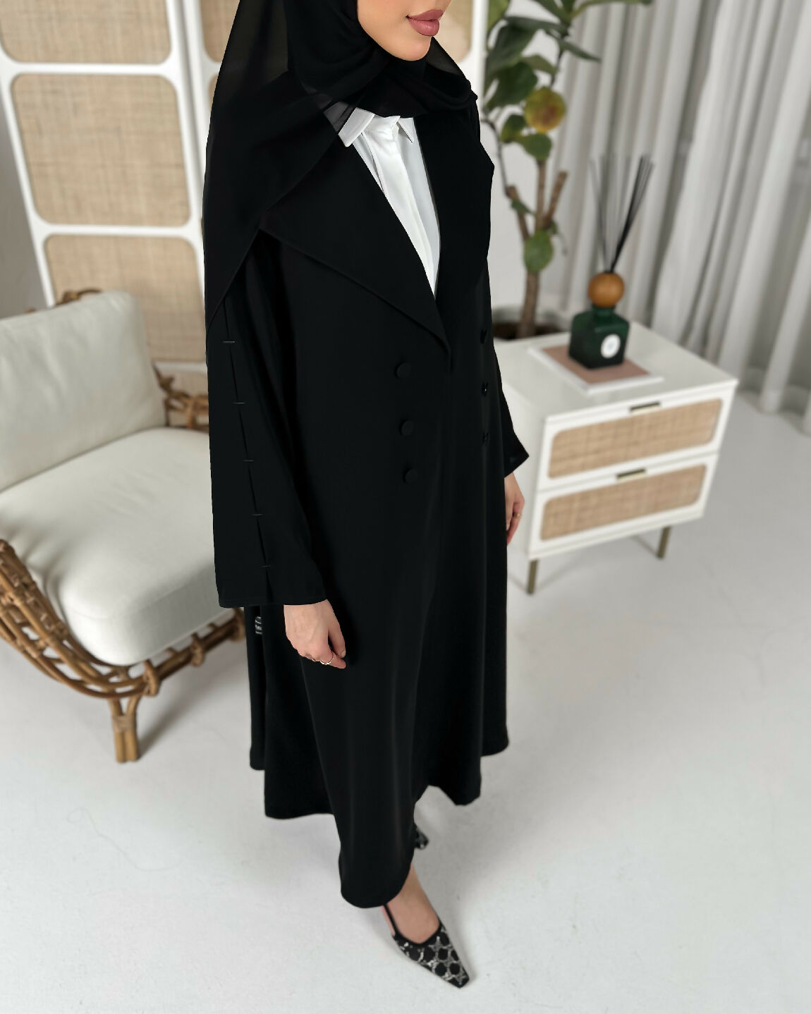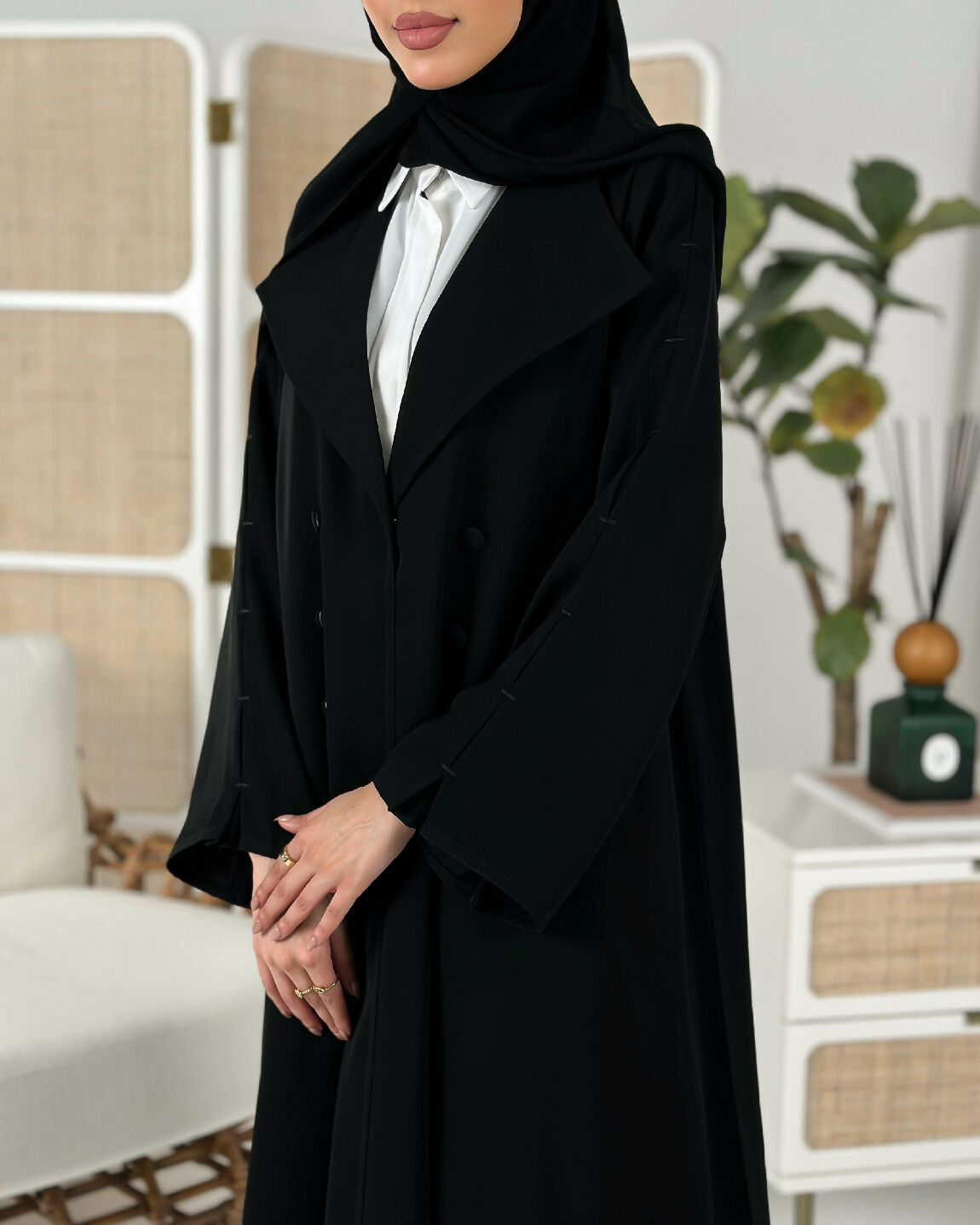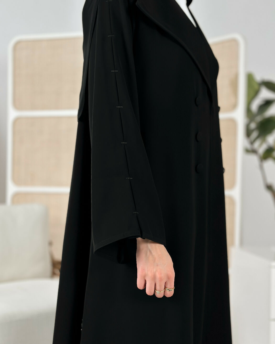 قصة الكم منيزه مع تطريز ناعم باللون الأسود