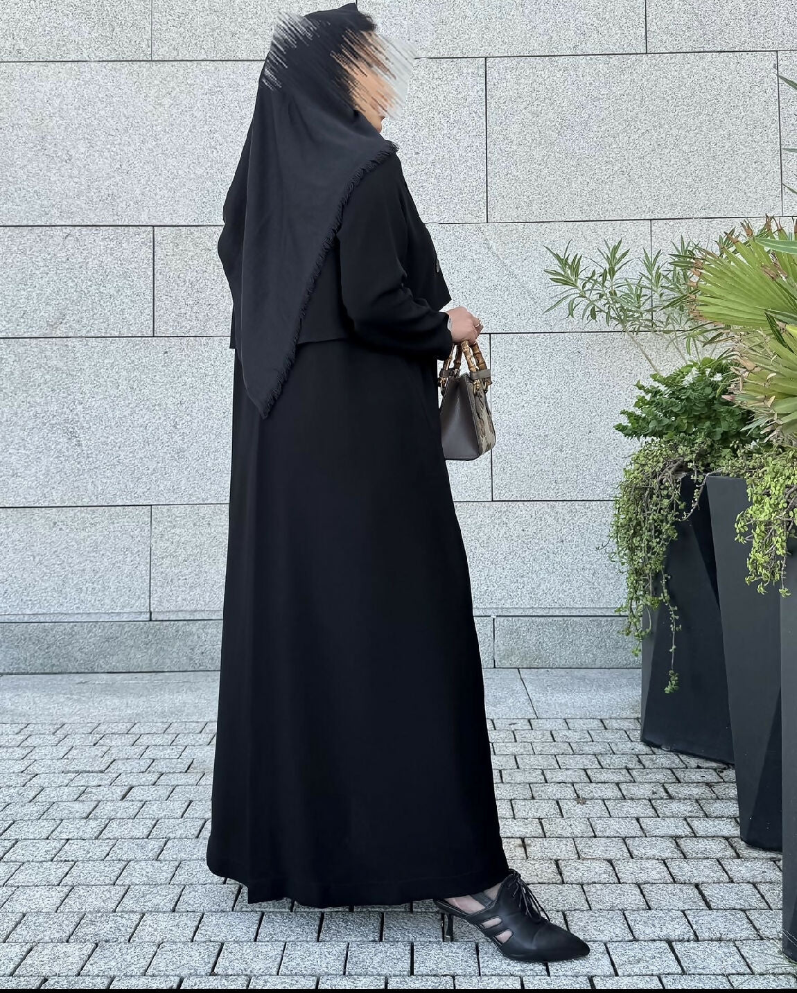 عبايه بقصة الترنش كوت بخام الكوبا سواد فاحم