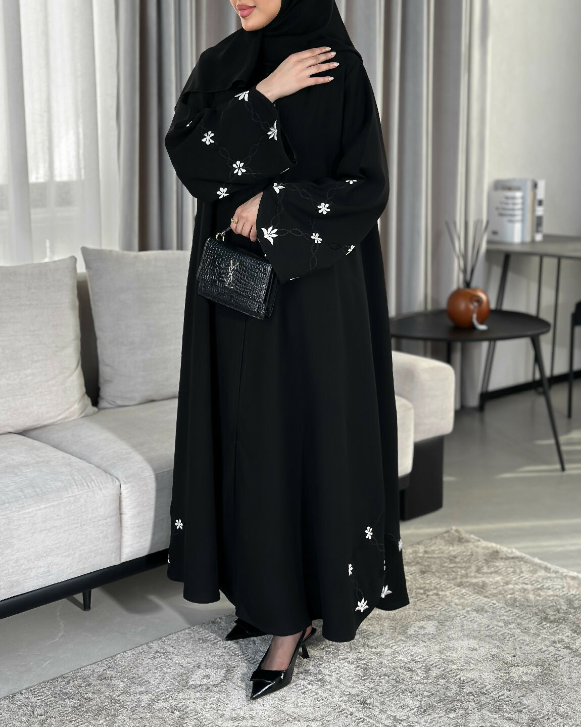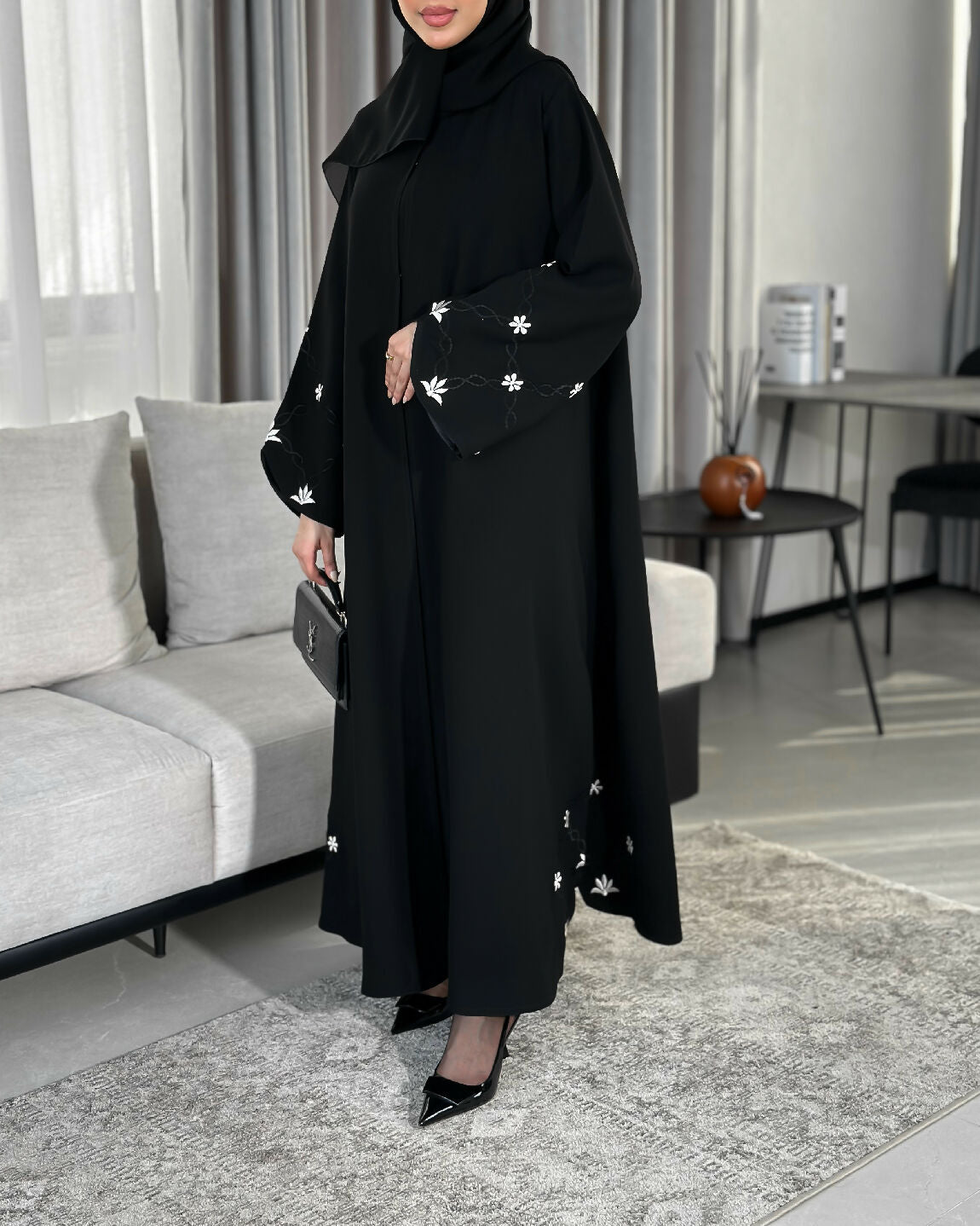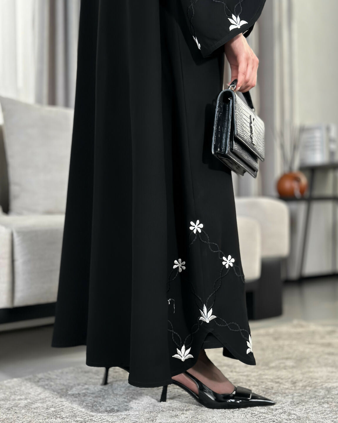 مع تطريز باللون الأبيض اللؤلؤي و الأسود