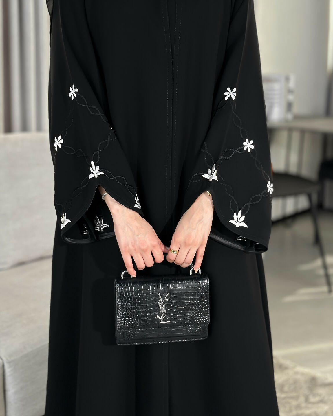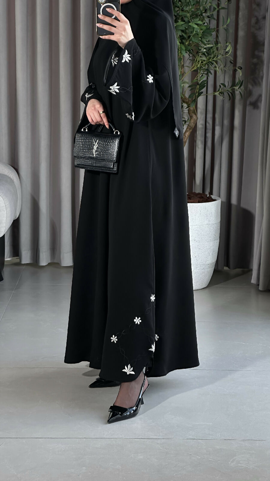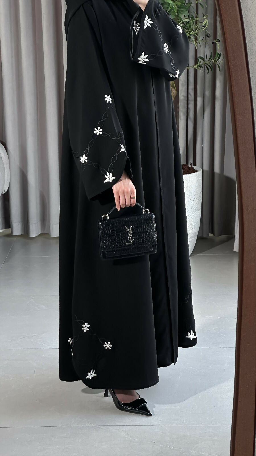 مع تطريز باللون الأبيض اللؤلؤي و الأسود